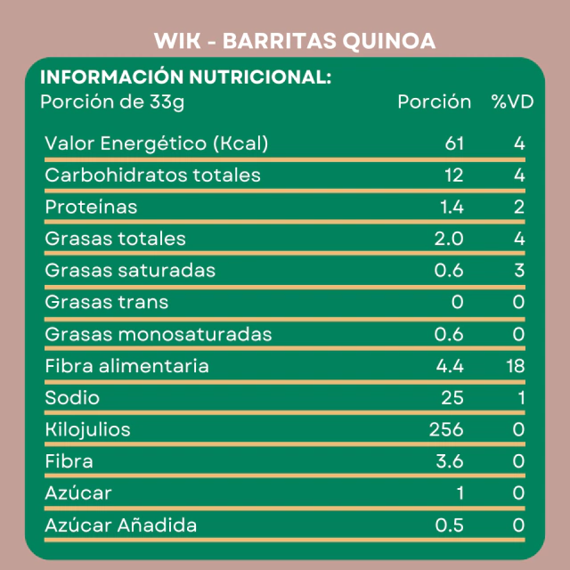 CAJA X 20 BARRITAS WIK QUINOA Y CHOCOLATE 20G