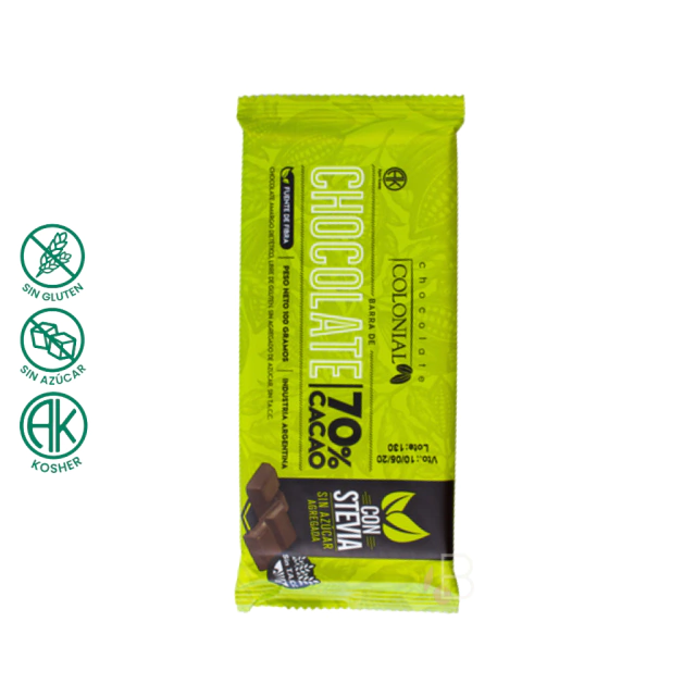 CHOCOLATE COLONIAL 70% CACAO CON STEVIA X 100 G
