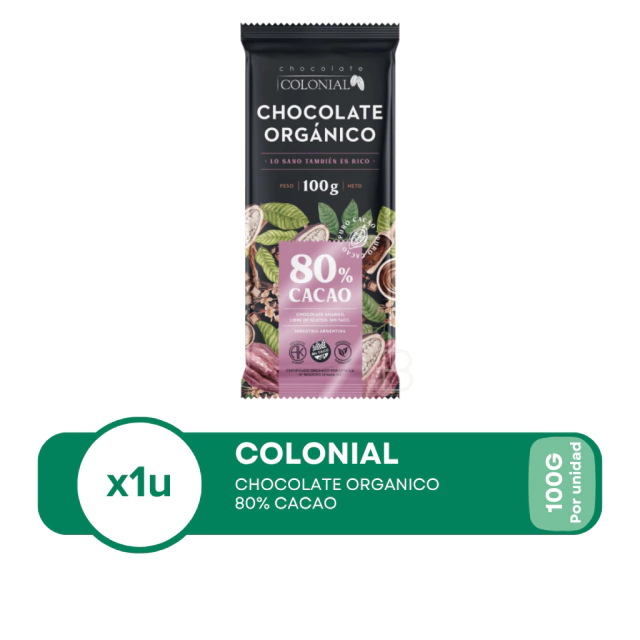 CHOCOLATE COLONIAL ORGANICO 80% CACAO X 100 G