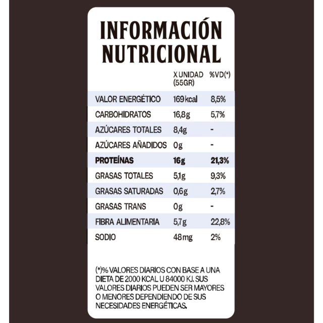 16g de proteína por porción (55g)