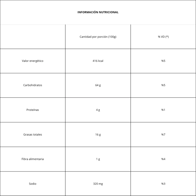 o Ingredientes: pasas de uva, azúcar, manteca de cacao, leche en polvo entera, masa de cacao, leche descremada en polvo, emulsionante (INS 322), ARO (vainillina).