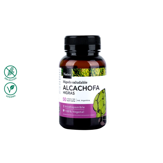La alcachofa es una de las fuentes vegetales más ricas en calcio, hierro, magnesio y potasio. También contiene fibra y cinarina, un compuesto que ha sido estudiado por estimular el funcionamiento del hígado. Este compuesto de sabor amargo que se encuentra en las hojas, mejora la función del hígado y de la vesícula biliar, estimula la secreción de jugos gástricos y disminuye los niveles de colesterol en sangre. A nivel digestivo la alcachofa contiene mucha fibra que ayuda a combatir el estreñimiento. Como complemento en dietas de adelgazamiento ayuda a evitar la retención de líquidos y eliminar grasa a través de la billis. Natier utiliza para su formulación 100% extracto concentrado de alcachofa con el objetivo de lograr mayor potencia en los beneficios y propiedades nutricionales, superando exigentes controles de calidad.