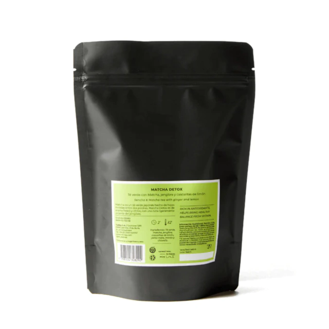 Matcha es un té verde japonés hecho de hojas molidas entre dos piedras. De aroma cítrico y fresco, este blend de té verde Sencha, tiene la intensidad de Matcha y jengibre, con un toque de Mate, que le agrega energía a la taza y aportan claridad a la mente. Rico en antioxidantes, Matcha Detox ayuda a equilibrarnos desde adentro.