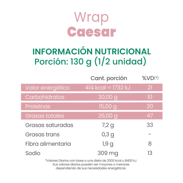 o Ingredientes: Wrap Caesar con mix de lechugas, pollo, queso crema, queso en hebras y aderezo Kansas Caesar.